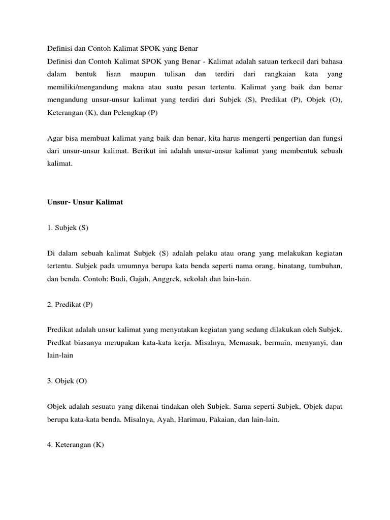 Contohnya terlihat pada kalimat brikut. Ayah berkata kalau dia senang saya lulus ujian. Dari beberapa pengertian di atas, kita tahu bahwa kata efektif berfokus pada apakah sesuatu tercapai atau tidak, dan tidak fokus pada bagaimana sesuatu dilakukan, melainkan, jika itu berhasil dilakukan. Untaian doa perlindungan memohon kepada allah swt dari segala kejahatan dan bahaya. Sebuah kalimat harus tersusun setidaknya oleh dua kata atau pun dua frasa kata yaitu satu kata subjek dan satu kata predikat.